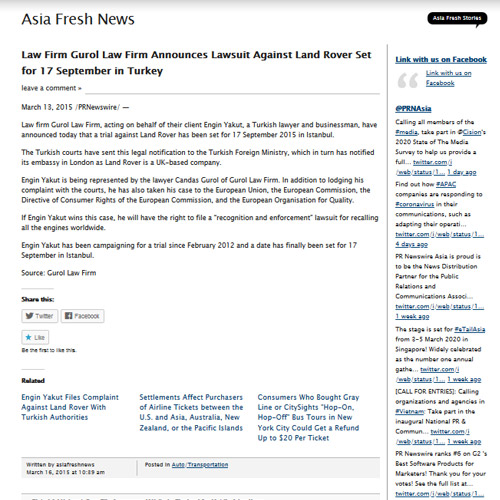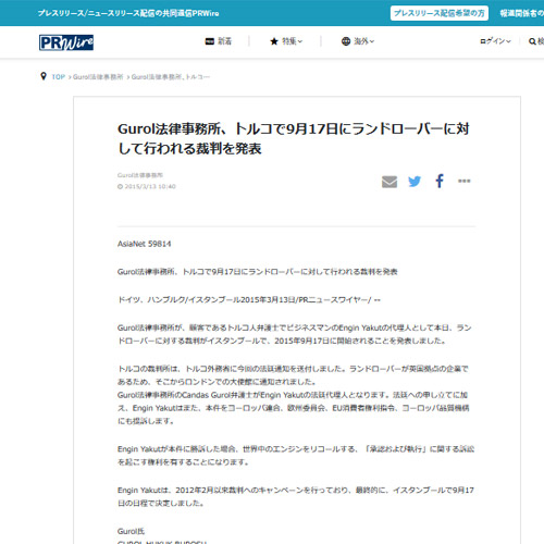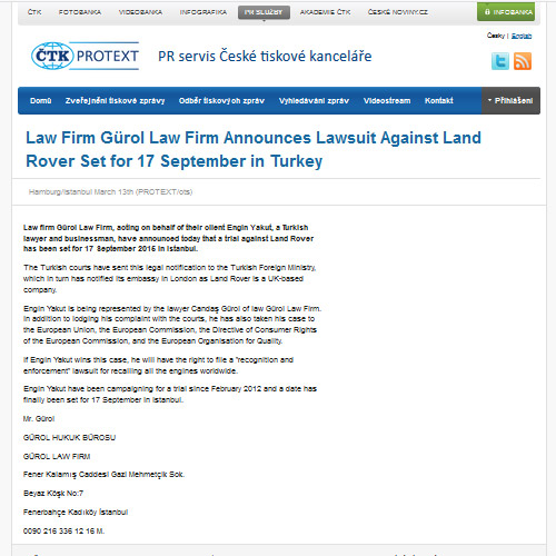 Gurol法律事務所、トルコで9月17日にランドローバーに対して行われる裁判を発表 (Gurol LLP, Land Rover aleyhindeki davayı 17 Eylül'de Türkiye'de açıkladı)