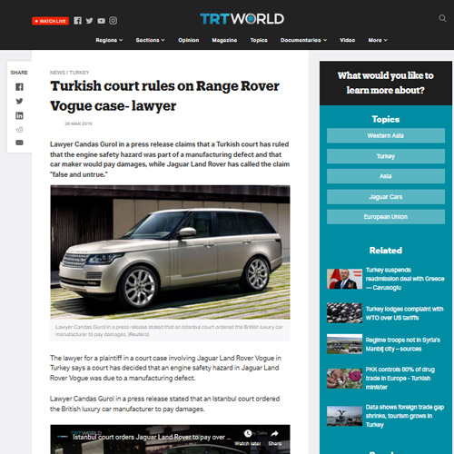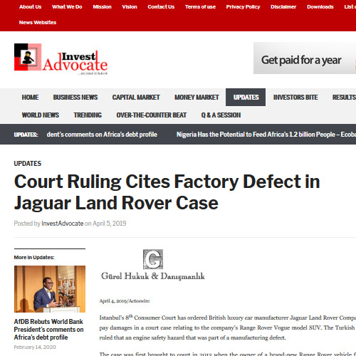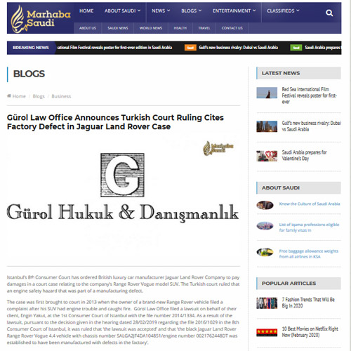 GÜROL Law Office Announces Turkish Court Ruling Cites Factory Defect in Jaguar Land Rover Case