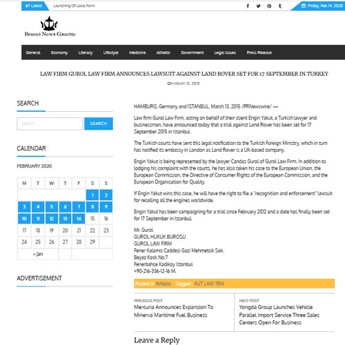 Law Firm Gürol Law Firm Announces Lawsuit Against Land Rover Set for 17 September in Turkey